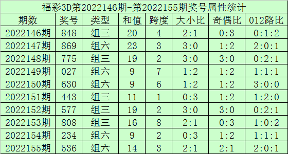 在以上号码中,号码1表现活跃,开出了5次;号码7、9表现较冷,开出了1次。号码奇偶比为14:16,奇偶基本持平,本期看好奇数开出;号码大小比为11:19,小号非常热,本期看好小号再出;本期排除号码:8,胆码关注:3。
