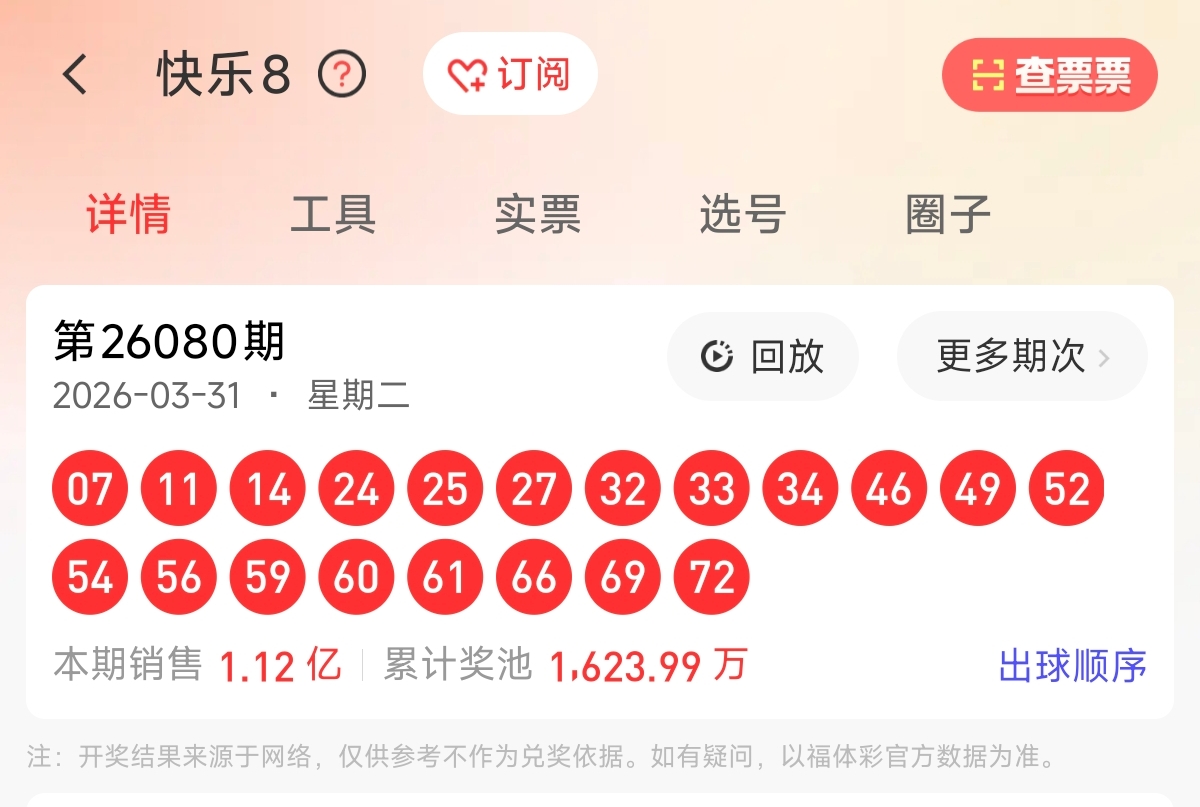 欢迎各位多友,我是浮星光,来到快乐8第2026081期开奖号码走势分析。让我来给大家分析一下本期快乐8的开奖号码的走势,分析选号。预祝各位多友行大运,一击命中,成功登顶!