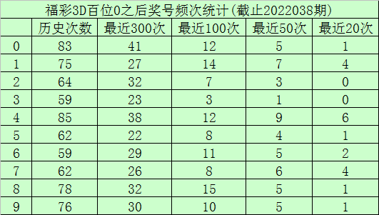 开奖回顾:第2022038期3D奖号为083。形态:组六,奇偶比1:2,大小比1:2,012路比为2:0:1。
