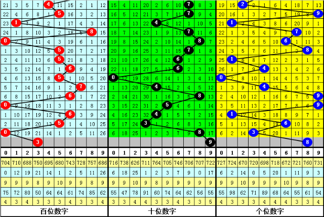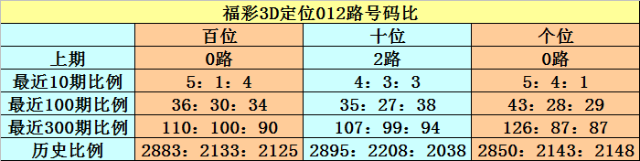 百位推荐:近10期出现5个0路号、1个1路号、4个2路号,0路号大热,1路号走势低迷。本期注意0路号,关注号码3、6、9。