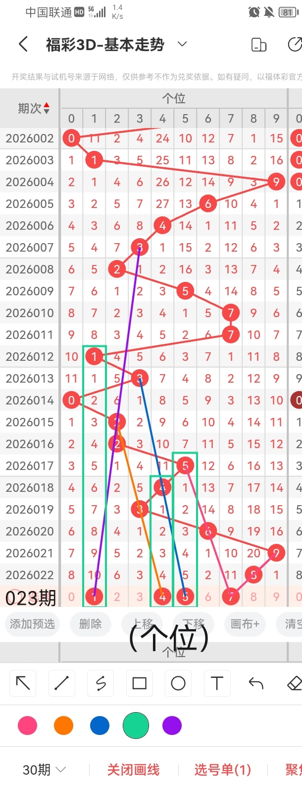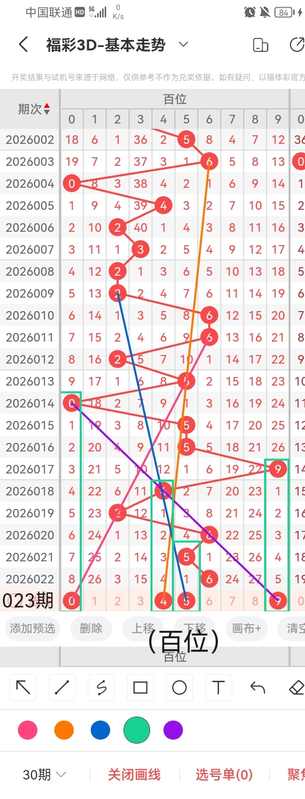 通过以上对上期的简单回顾,下面进入2026023期(下面简称本期)的选号分析: