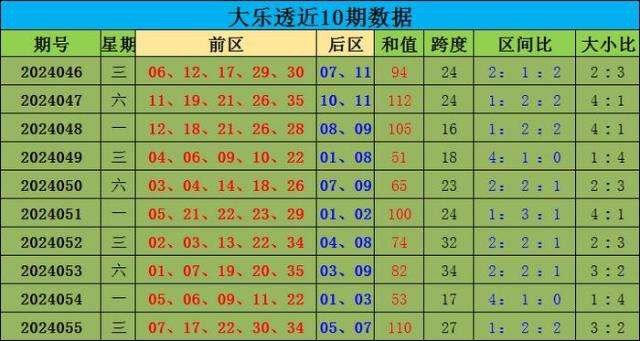 大乐透第24055期奖号为:07 17 22 30 34+05 07,前区三区比为1:2:2,大小比为3:2,跨度为27,后区奖号为小大组合:05 07。