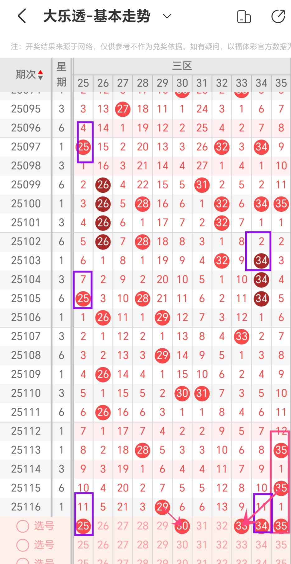 各位兄弟姐妹们大家好,我是nice,我喜欢研究数字的走势规律以及数据分析,通过同期次、同日期、同星期奖号等等出号规律进行杀号和做数据条件,红球杀号的准确率和稳定度都相当不错,首先通过上面的模块进行杀号可以做到杀红球12枚,然后将杀号带入到数据条件中进行选胆,这种方法屡试不爽帮助自己排除很多不必要的号码,将红球选号的数量控制在8-12枚,结合红球杀号带入到数据条件中选出的胆码,做胆拖组合控制成本