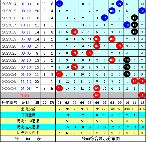 2、后区跨度分析:在第027期历史同期奖号中,后区跨度分别为:4-4-1-7-3-2-5-2-7-4-8-7-5-6-8-7,跨度大小比为7:9,012路比为2:8:6,奇偶比为8:8,今年第027期预计开出偶数跨度,关注跨度6。