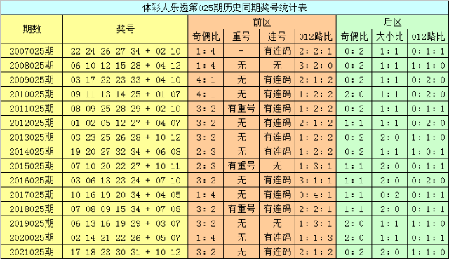 体彩大乐透第2022025期历史同期奖号分析: