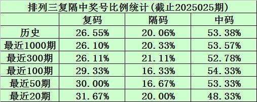 本期号码复隔中比例参考1:1:1。