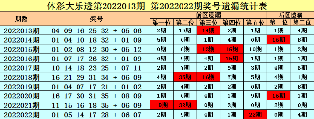 上期回顾:大乐透第2022022期奖号为:01 05 14 17 28 + 06 07,各位号码遗漏期数分别为:2期、9期、4期、1期、22期+0期、4期,前区遗漏总值为38期,后区遗漏总值为4期。