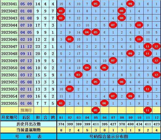 后区分析:上期后区开出1路+0路奖号01+06,最近10期后区奖号012路比为8:5:7,本期注意全2路组合,关注两码05、11。