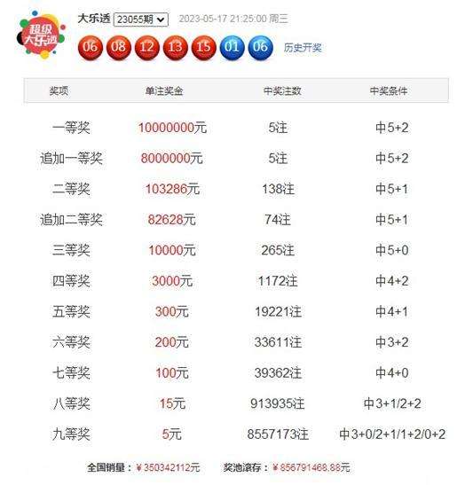 大乐透第2023055期奖号为:06、08、12、13、15+01、06。其中前区冷热比为4:1,没有出现重号,三区比为3:2:0,包含连码组合,后区为1路+0路奖号。