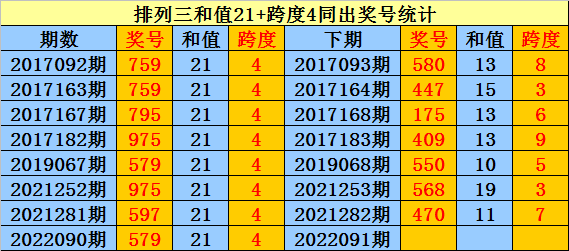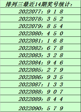 上期回顾:排列三第2022090期奖号:579。和值21,跨度4。