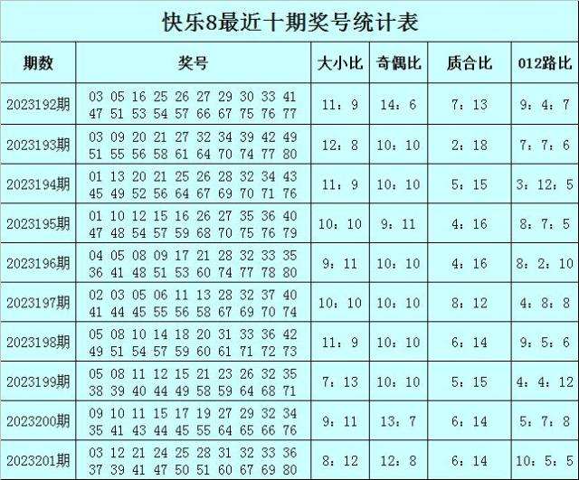 福彩快乐8第2023201期开奖回顾:03 12 21 24 25 28 31 32 33 36 37 39 41 47 50 51 60 67 69 80,其中奖号大小比开出8:12,奇偶比开出12:8,质合比开出6:14,012路比开出10:5:5。