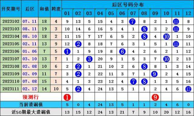 后区走势分析:最近五期后区号码分别开出小大、小大、小大、大大、小大,小大组合走势相对较热,本期预计小大组合开出,后区参考01 09