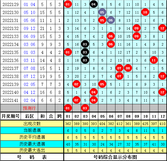 其中,后区奇偶比为18:22,大小比为20:20,012路比为18:12:12,本期后区金胆参考01。