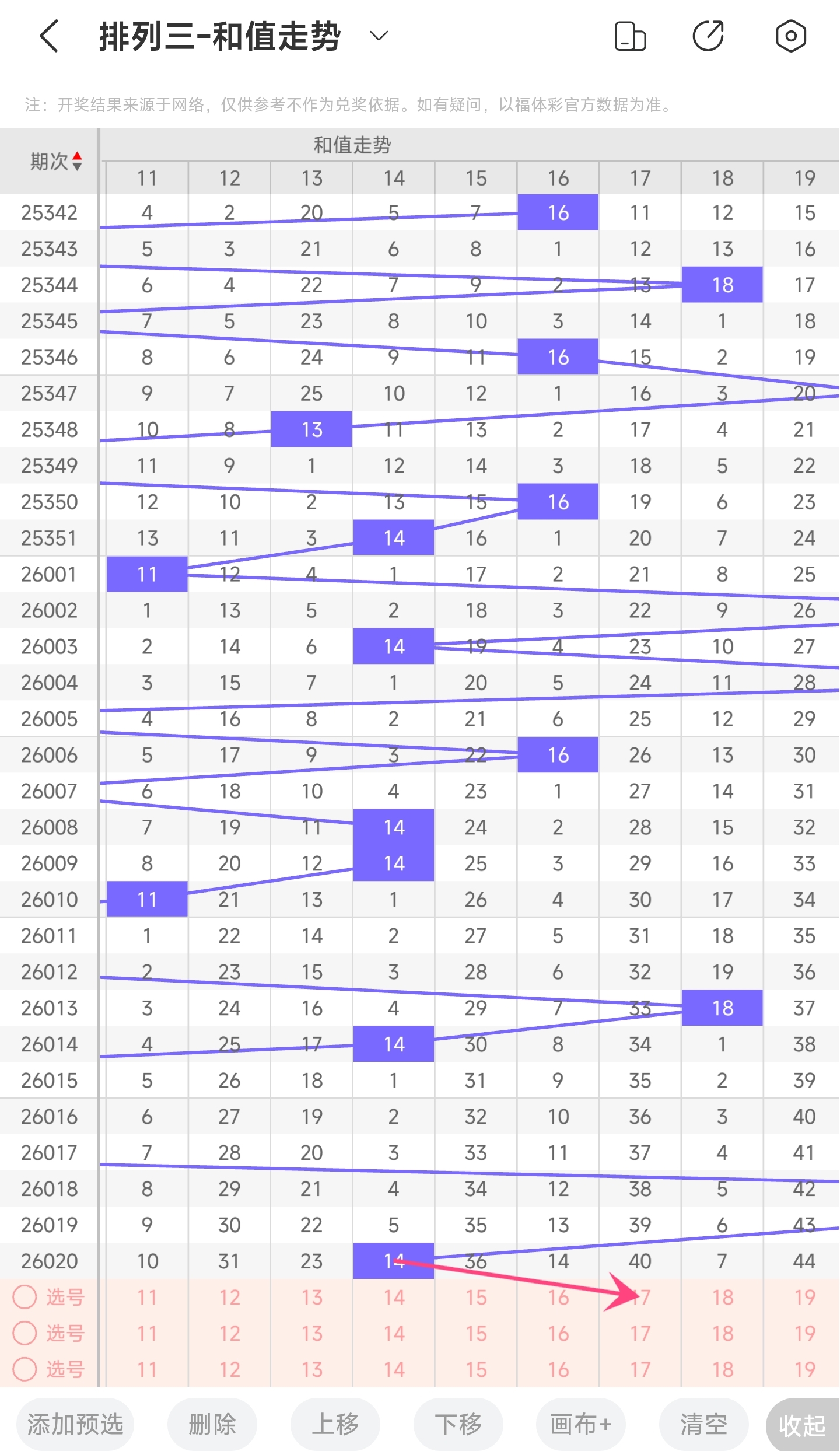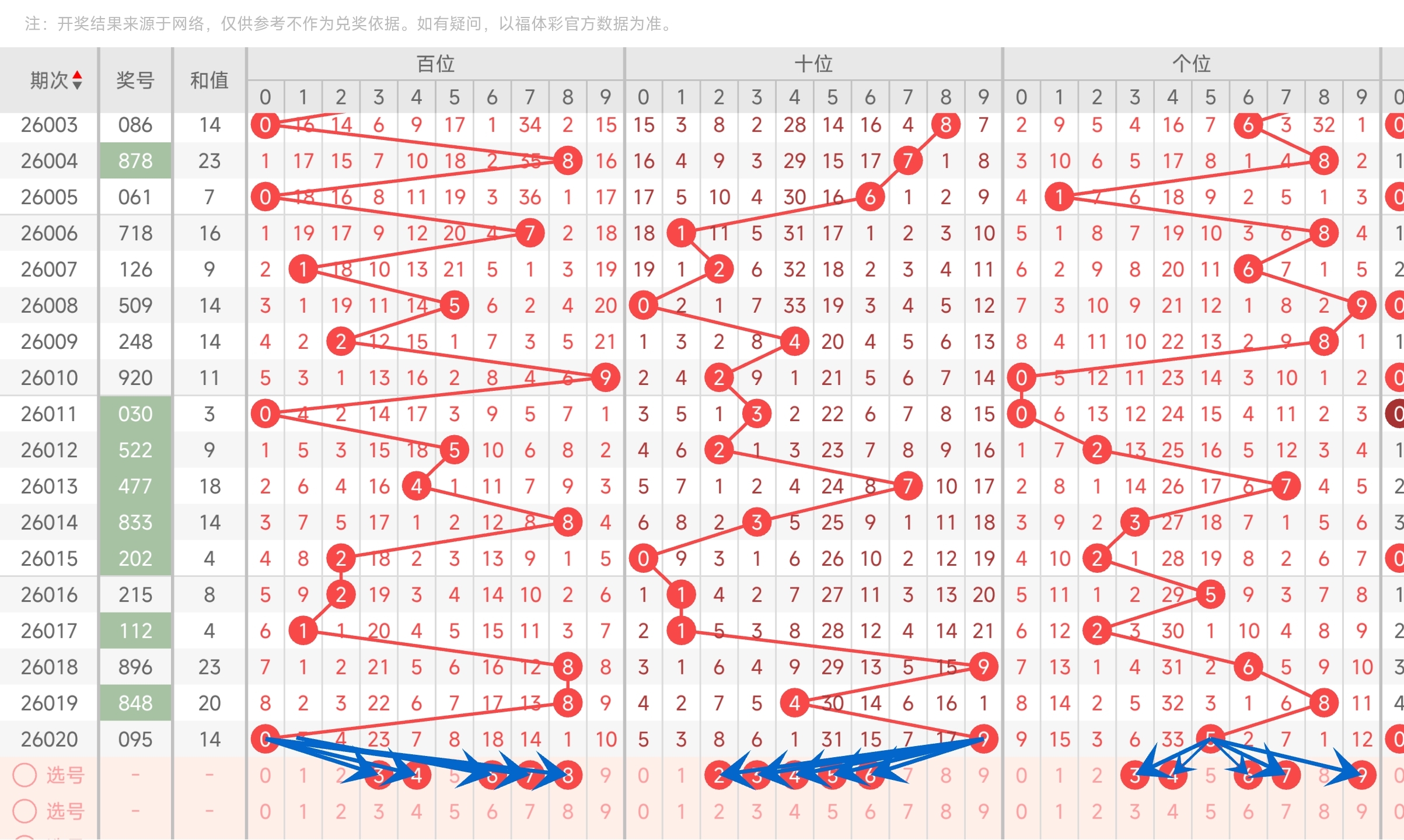 二、通过和值走势分析:
