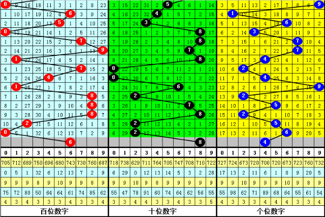从以上统计可以看出,百十位两码合差2与2同时出现之后其下期两码合差表现最热的4个分别为:0126,本期百十位两码合差可以参考这四码中的数据。