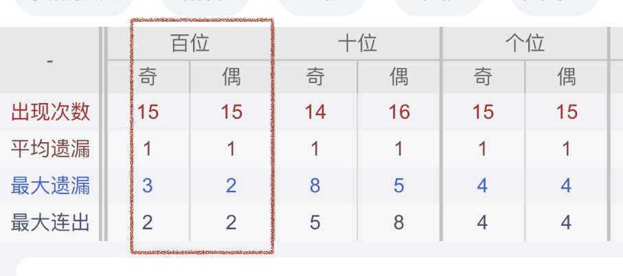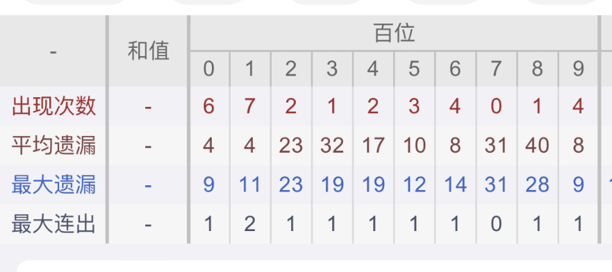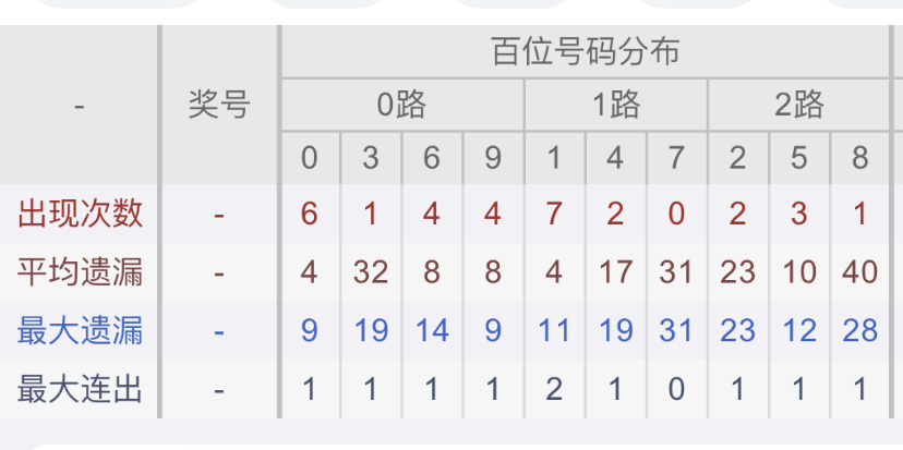 从近30期数据我们可以看出百位0,1是热码,这个冷热码数据我们结合之后的分析再利用它