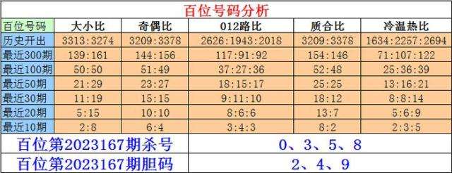 排列三百位第2023167期杀号:0、3、5、8