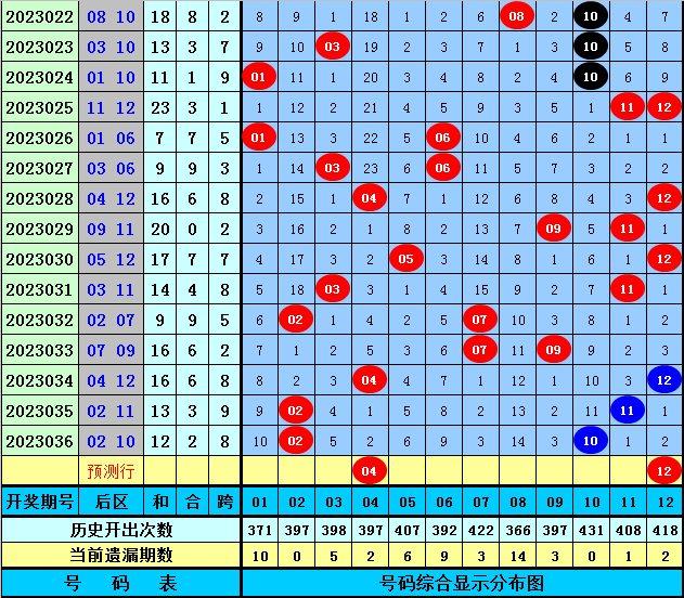 后区上期开出奖号:02和10,分别出现在一、三区,最近5期三区比为4:2:4,本期注意第二区号码走冷轮空,出号大范围参考01、02、04、10、12,精选两码04、12。