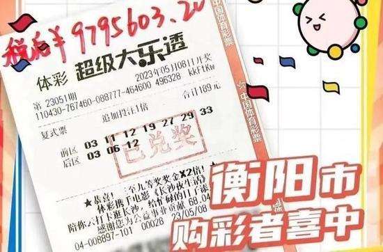 前日,位于湖南省衡阳市珠晖区衡茶路3号酃湖宾馆旁的第4304008897号彩票店,中出大乐透一等奖1注,中奖彩票是一张“7+3”小复式,单票拿下总奖金1222万余元。