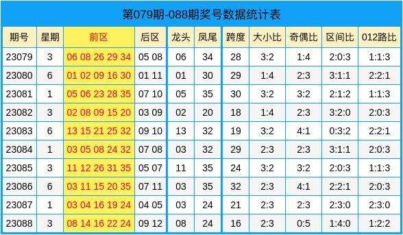 跨度分析:上期前区跨度为16,近10期最大跨度为32,最小跨度为16,跨度平均值为24。60。本期看好跨度走势上升,推荐跨度31。