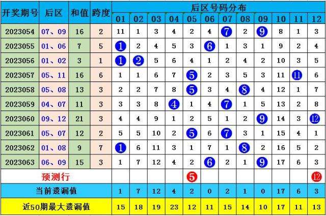 后区分析:大乐透后区上期开出偶奇组合,跨度为3。近10期后区奇偶组合出现5期,偶奇组合出现2期,奇奇组合出现3期,偶偶组合出现0期,本期预计奇偶组合回补;近10期后区两码跨度1-5开出8次,6-11开出2次,预计本期后区两码跨度为7,两码综合推荐:05、12。