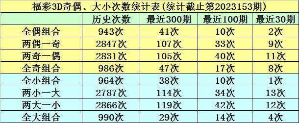 在前10期开奖中,两小一大组合出现5次,两大一小组合出现4次,全大组合出现1次,全小组合出现0次,本期预计开出两大一小组合。