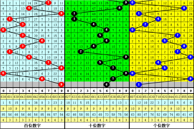 尾号球:上期奖号为9,开出大号、奇号,该位前10次开出大号、奇号的现象时其奖号分别为:209、925、739、315、237、357、665、127、499、975,其中尾号球012路比为3:3:4。