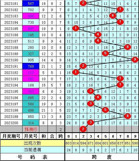 福彩3D第2023200期最大跨度开出3,近期最大跨度波动较大,本期预计最大跨度在1-5区段出现,最大跨度关注12345,重点关注跨度2。