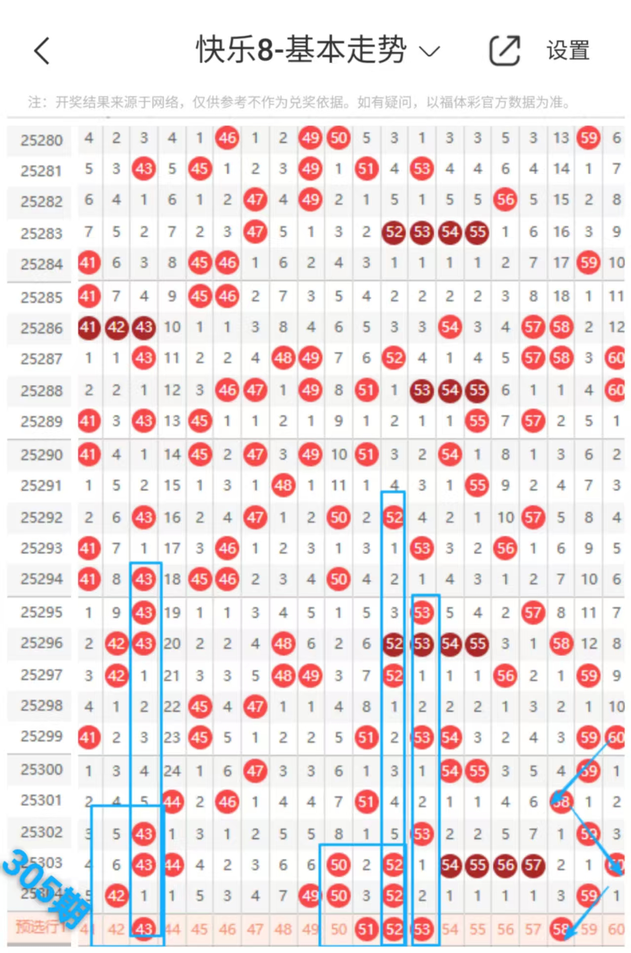 51 52 53号:这三个号码本期是可以上一组选二复式参考的,重点关注咱们的51 53号同时下落的走势的。