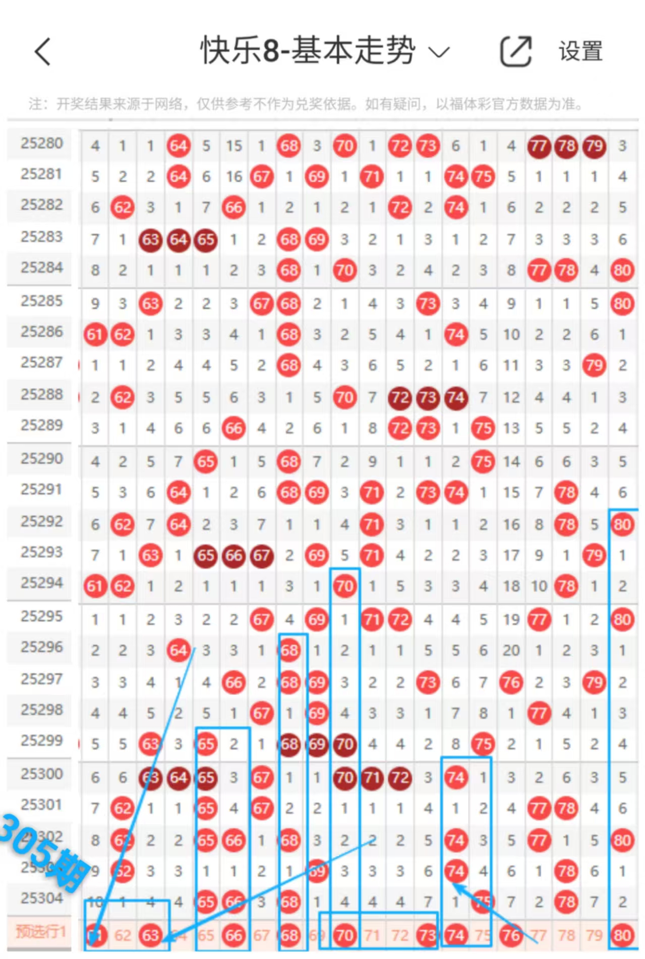 80号:这个号码本期是自身跳格对称下落的走势的,顺延78号下落的走势的。