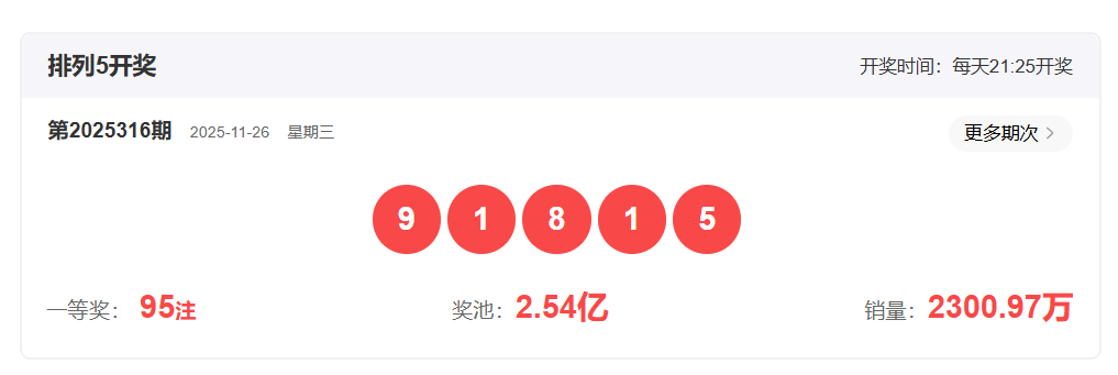 上期排列5开奖号码回顾
