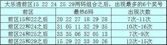 前区两码15和22和之后表现最热的6个号码为:20、22、27、18、29、28;