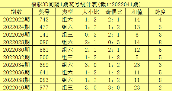 跨度:前5期跨度在1-8之间波动,振幅为8点,分布较广,上期开出跨度7,走高5点,本期注意上期跨度重复开出。