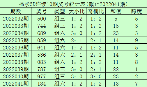 开奖回顾:福利彩票3D第22041期奖号开出184。奖号类型为组六,奇偶形态为奇偶偶,大小形态为小大小。