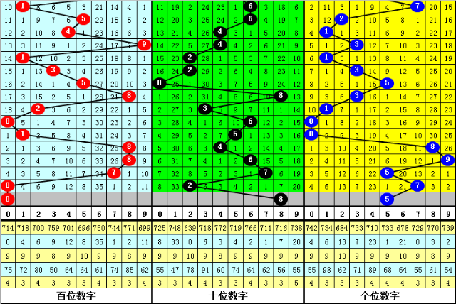 个位:上期奖号7为:奇数大号,在连续7期开奖中,该位分别开出:1:奇数小号、0:偶数小号、0:偶数小号、8:偶数大号、9:奇数大号、5:奇数大号、7:奇数大号,其中奇数明显走热,大号明显活跃,本期个位预计出现奇数大号。