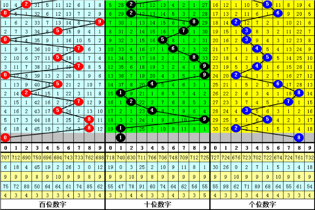 其中两码合0-9开出频次分别为:两码合9开出14次,8开出10次,2、4开出6次,0、3、5开出5次,1开出4次,6开出3次,7开出2次,其中两码合012路比为27:12:21,奇偶比为30:30,大小比为34:26;