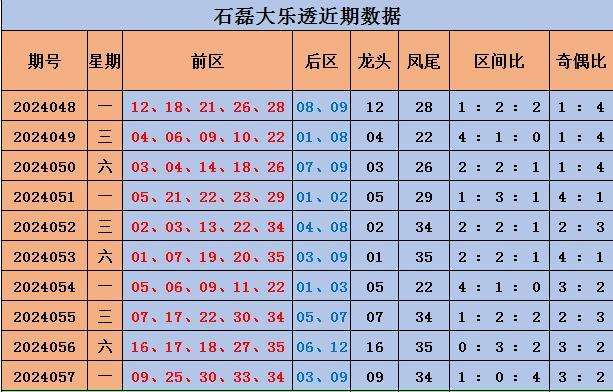 058期石磊大乐透预测奖号:龙头凤尾三区比分析