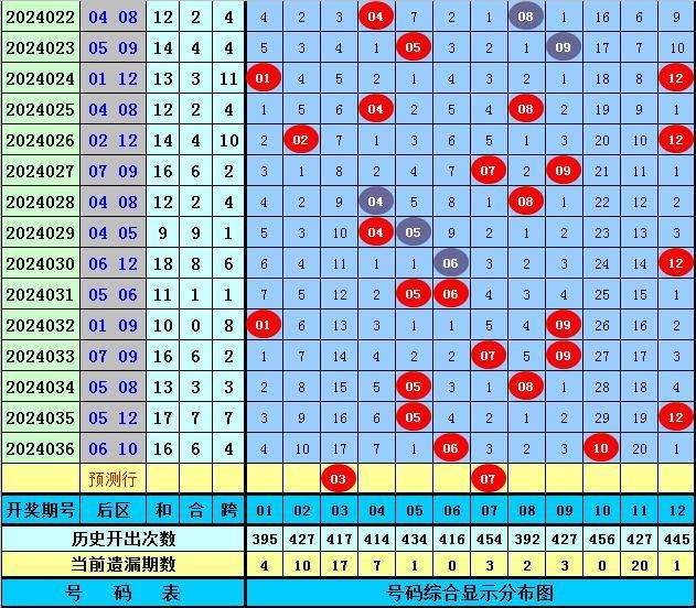 后区分析:上期后区奖号为06和10,最近5期后区和值分别为10、16、13、17、16,后区跨度分布范围在2-8,本期后区注意两码03、07。