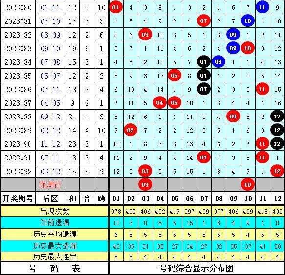 上期回顾:体彩大乐透第23092期奖号为:03 16 21 26 32+03 12,前区奖号大小比为3:2,012路比为2:1:2,奇偶比为2:3,后区奖号大小比为1:1,奇偶比为1:1。