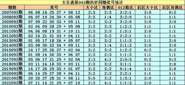 小王子大乐透第2023093期历史同期奖号属性分析: