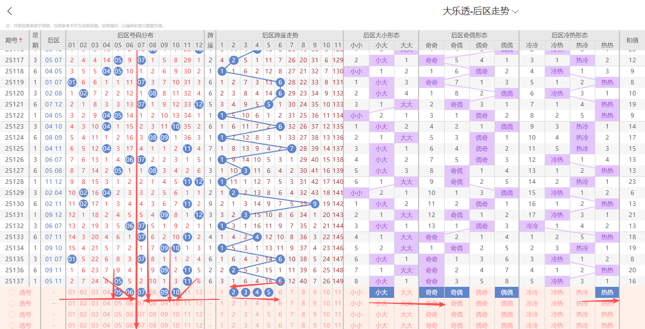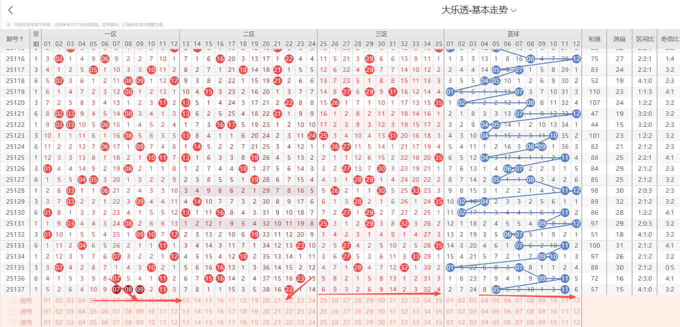 ③和值:结合对区间的比例数据来看本期和值参考81~99范围参考