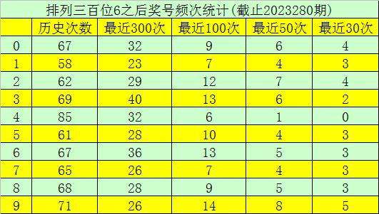 上期回顾:排列三第2023280期开出奖号601,奖号类型为:组六、大小小、偶偶奇,和值开出7。