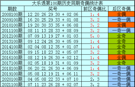 后区分析:在第100期历史同期开奖中,后区奖号奇偶比为16:12,最近5年同期后区奇偶走势为:全奇、一奇一偶、一奇一偶、一奇一偶、一奇一偶,今年同期看好偶数号码大热,关注号码04、10。