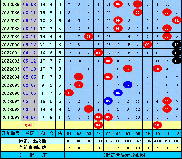樊可大乐透第2022100期历史同期奖号定位分析:
