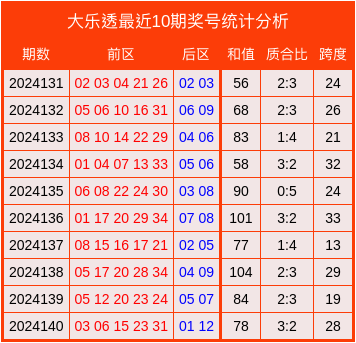 最近10期大乐透奖号统计分析表