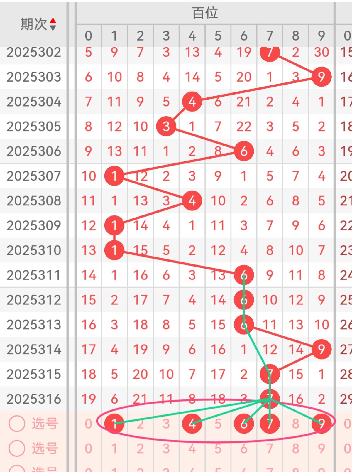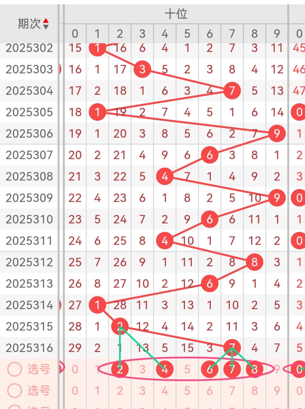 上期十位开出7,重点3号确定6、4、7:数字6近30期出现5次,是十位高频号,307、310、313期的多次开出形成明确活跃周期,作为中码区的核心,其兼容性极强,可与百位、个位的大小号灵活组合;数字4近30期出现3次,且在308、311期形成间隔开出节奏,作为中码区的辅助号,能有效分担6的热度,同时契合近期中码主导的十位走势;数字7作为316期十位开出的新号,大码区属性与近期十位“中码为主、大码补充”的格局一致,且打破了前两期小号的低迷,具备延续活跃的潜力。备用2号选定8、2:数字8作为大码区的重要成员,312期开出后虽暂未回归,但与7同属大码阵营,可强化大码区的覆盖范围,弥补单一大码的不确定性;数字2作为小号区的代表,315期开出后为十位注入小号活力,近30期小号仅出现1次,其补充能平衡中大号过度集中的走势,符合区间分布的回归规律。