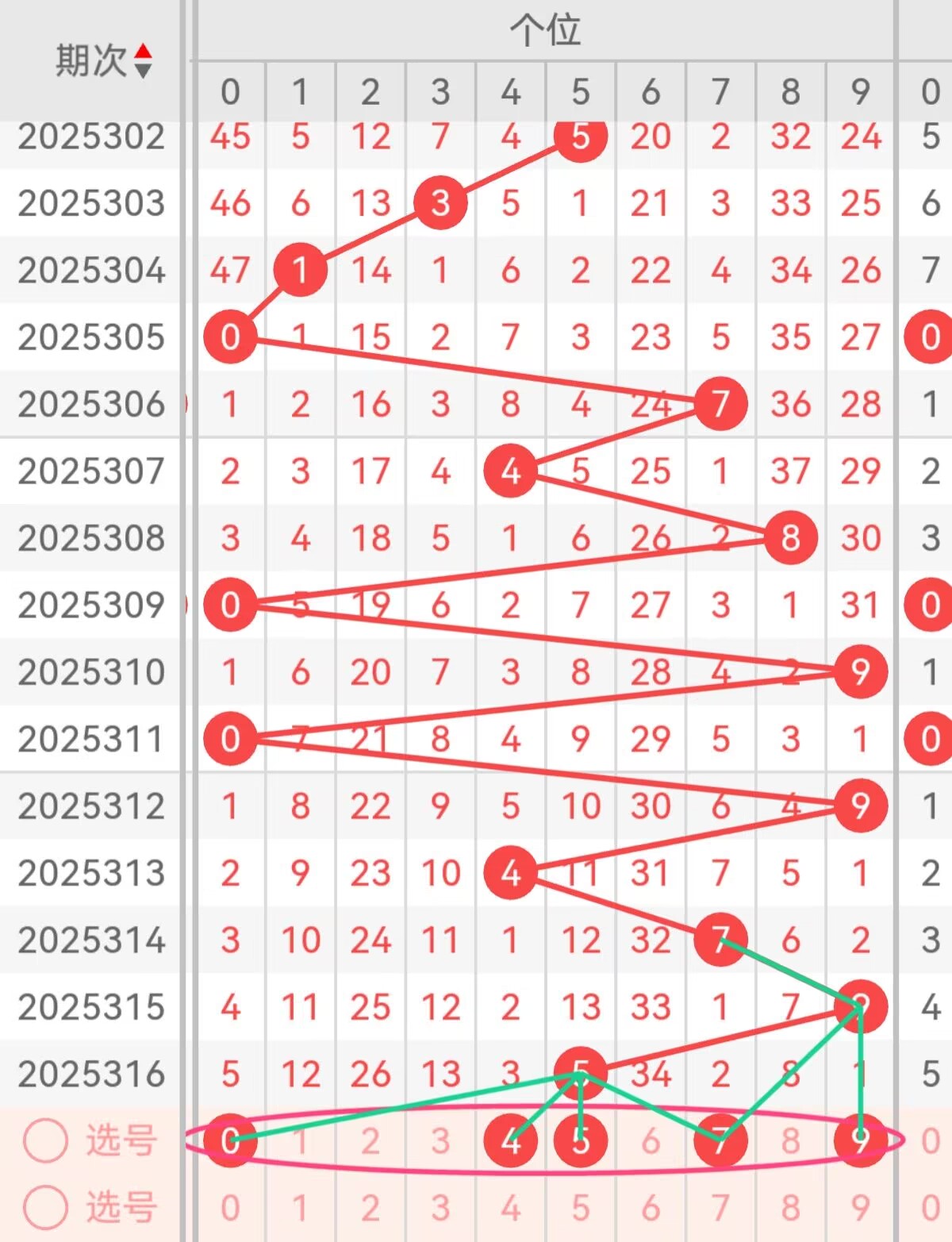 上期个位开出5,重点3号锁定9、4、5:数字9近30期出现3次,是个位低频号,310、312、315期的连续间隔开出形成清晰节奏,作为大码区的核心,其与十位、百位的大码组合兼容性强,延续了近期大码活跃的态势;数字4近30期出现5次,作为中码区的稳定号,307、313期的开出形成对称分布,能有效衔接大码9与中码5的过渡,平衡区间走势;数字5作为316期个位新号,中码属性填补了近期个位中码的空缺,与4形成中码区双重支撑,且其奇数属性平衡。备用2号选定0、7:数字0近30期出现3次,作为小号区的唯一活跃号,309、311期的开出为个位提供了小号补充,避免中大号过度集中,契合区间全覆盖的规律;数字7作为大码区的辅助号,314期开出后虽暂未重复,但与9同属大码阵营,可强化大码区的覆盖力度,同时其奇数属性与重点号5、9形成呼应,保持奇偶平衡。