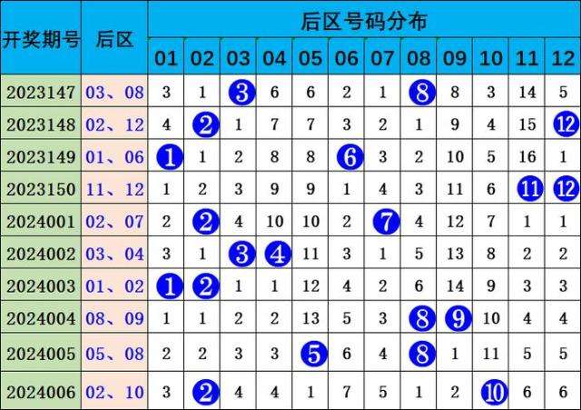 前一区(01-12):上期该区开出1个奖号08,该区最近6期共开出16个前球,表现较热,本期推荐该区奖号:07。
