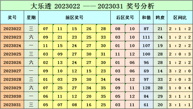 大乐透第2023032期预测: