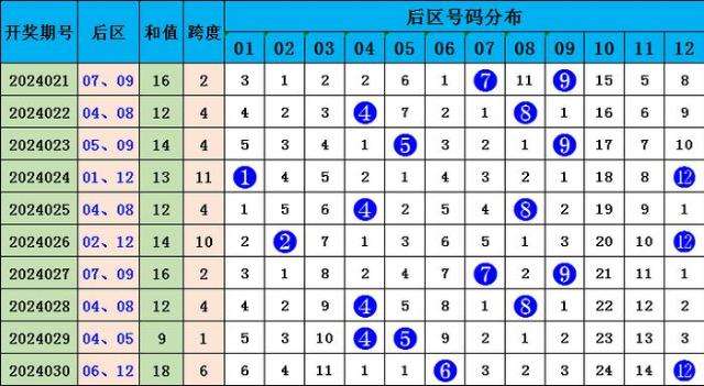 二区(13-24):上期奖号19,近10期出号较热,出号17枚,出现一次断区,二区近期走势较热。本期预测热出,推荐参考:16、21